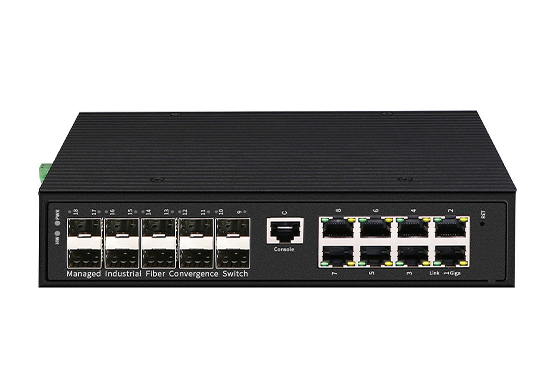 পরিচালিত ইন্ডাস্ট্রিয়াল সুইচ 8GE ইথারনেট পোর্ট +10 GIGA SFP পোর্ট